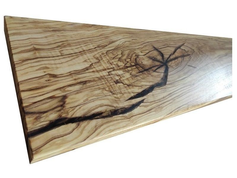 Choisissez votre style : bords naturels (live edge) ou chants droits. Contrairement à nos plans de travail lisses, nous mettons en valeur l'aspect brut et rustique de l'olivier : fissures et nœuds peuvent être conservés pour un look 100 % naturel.